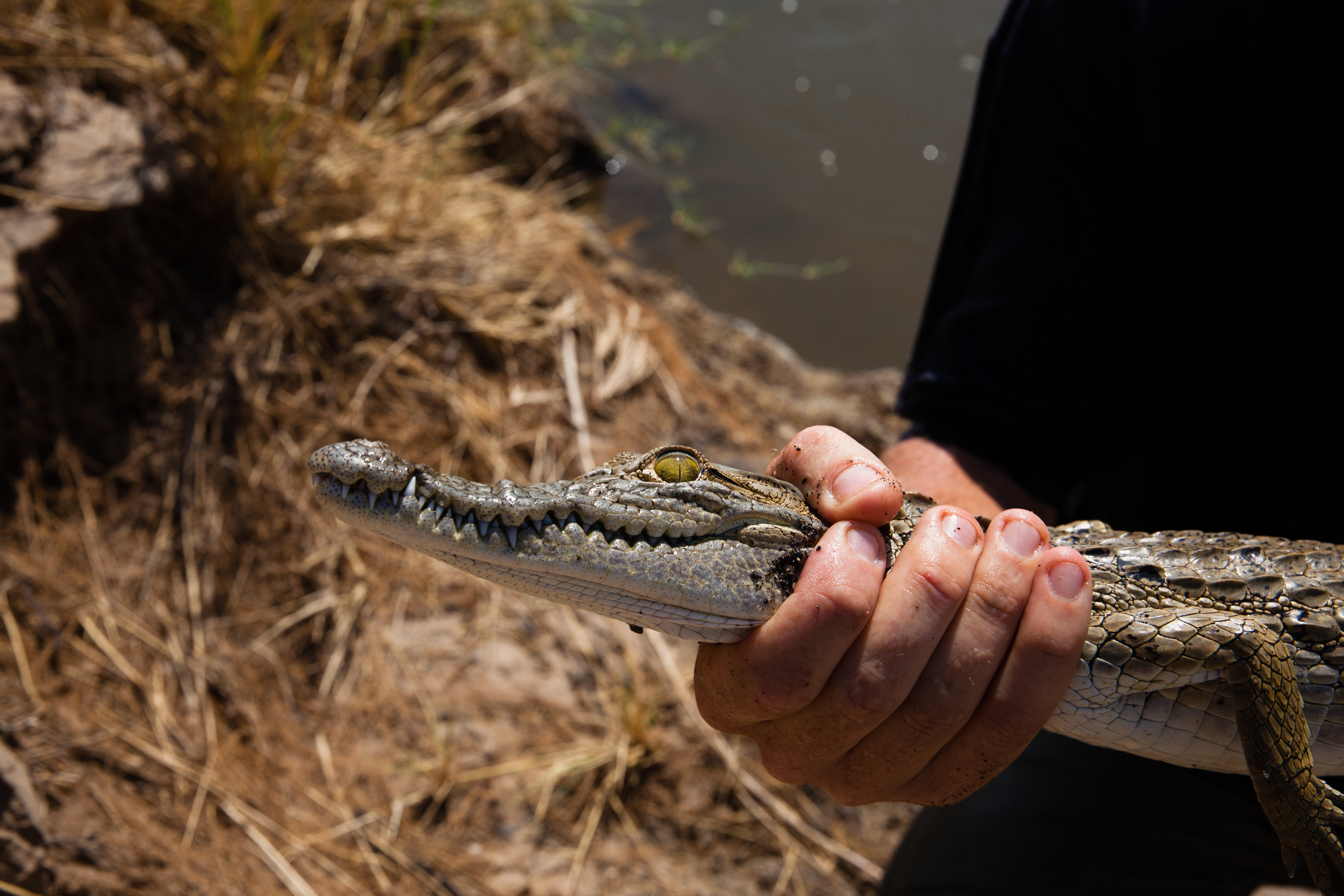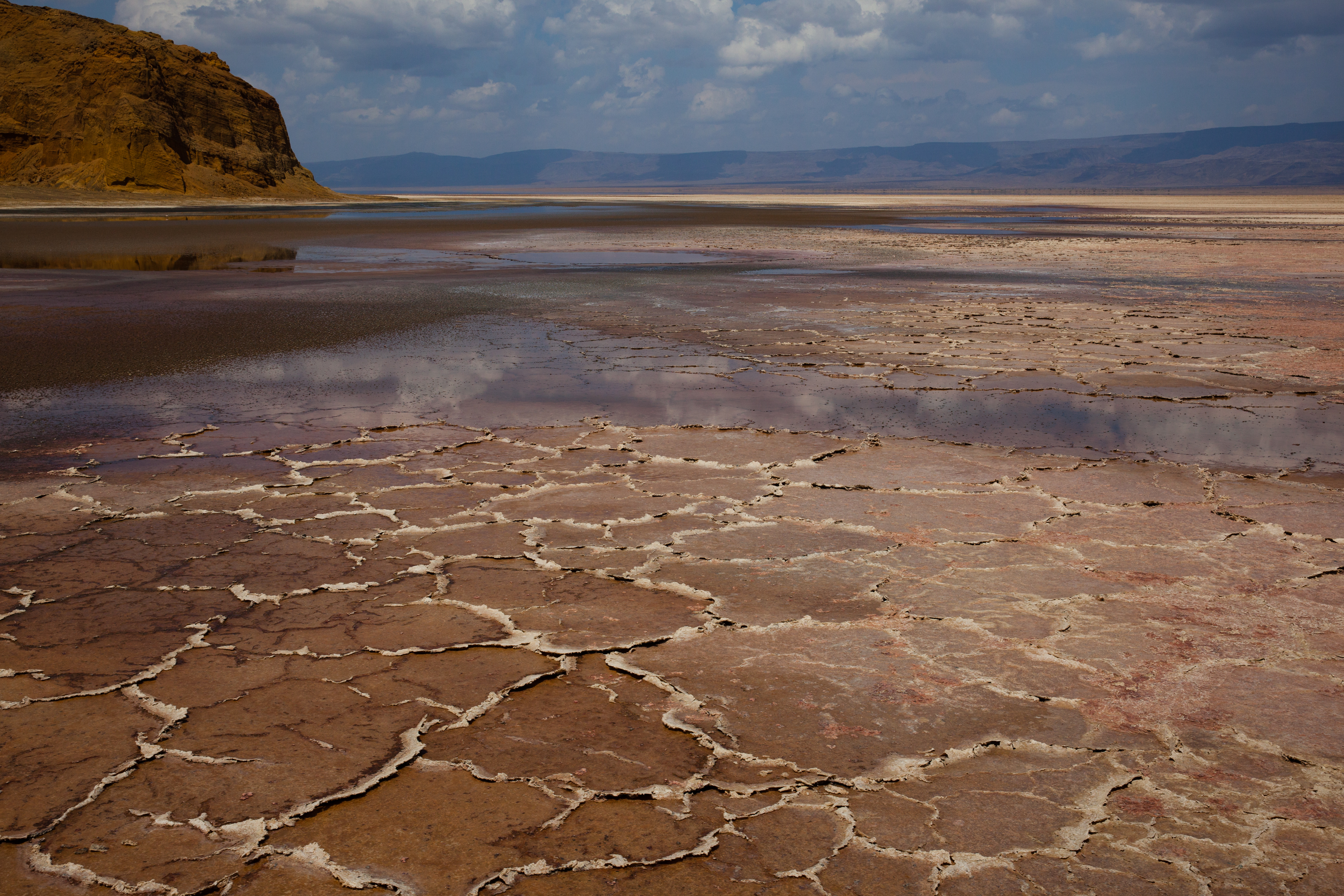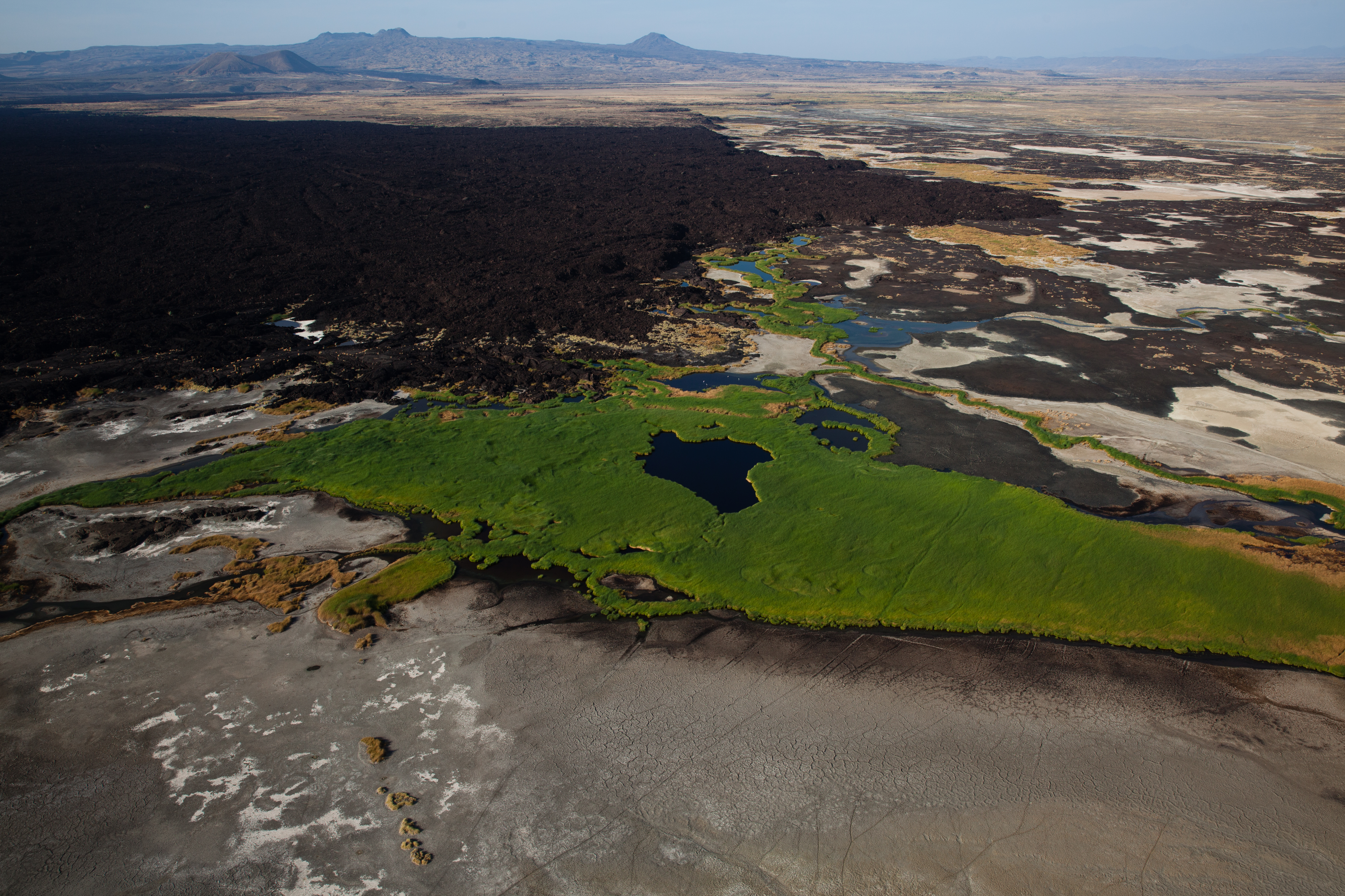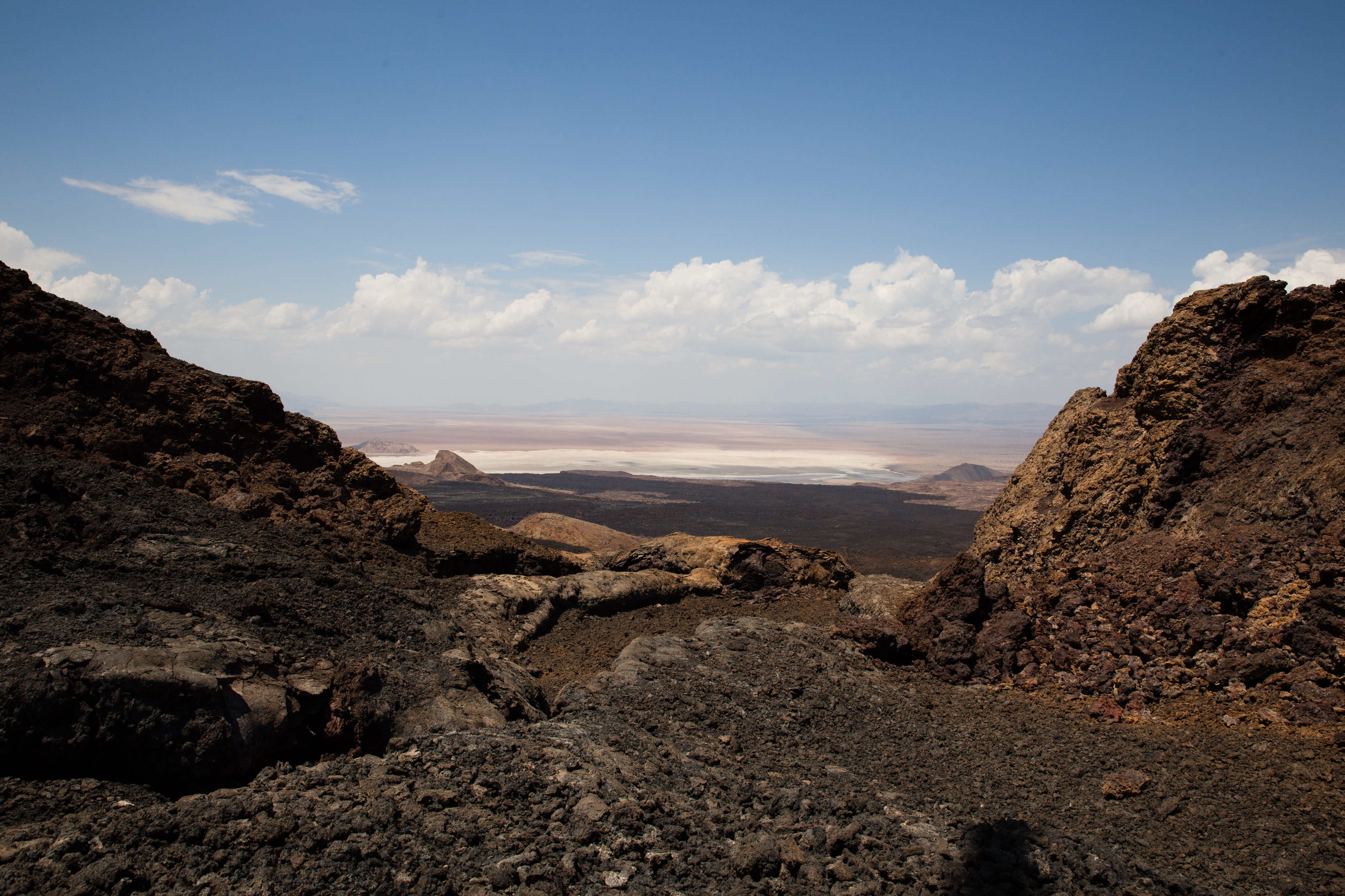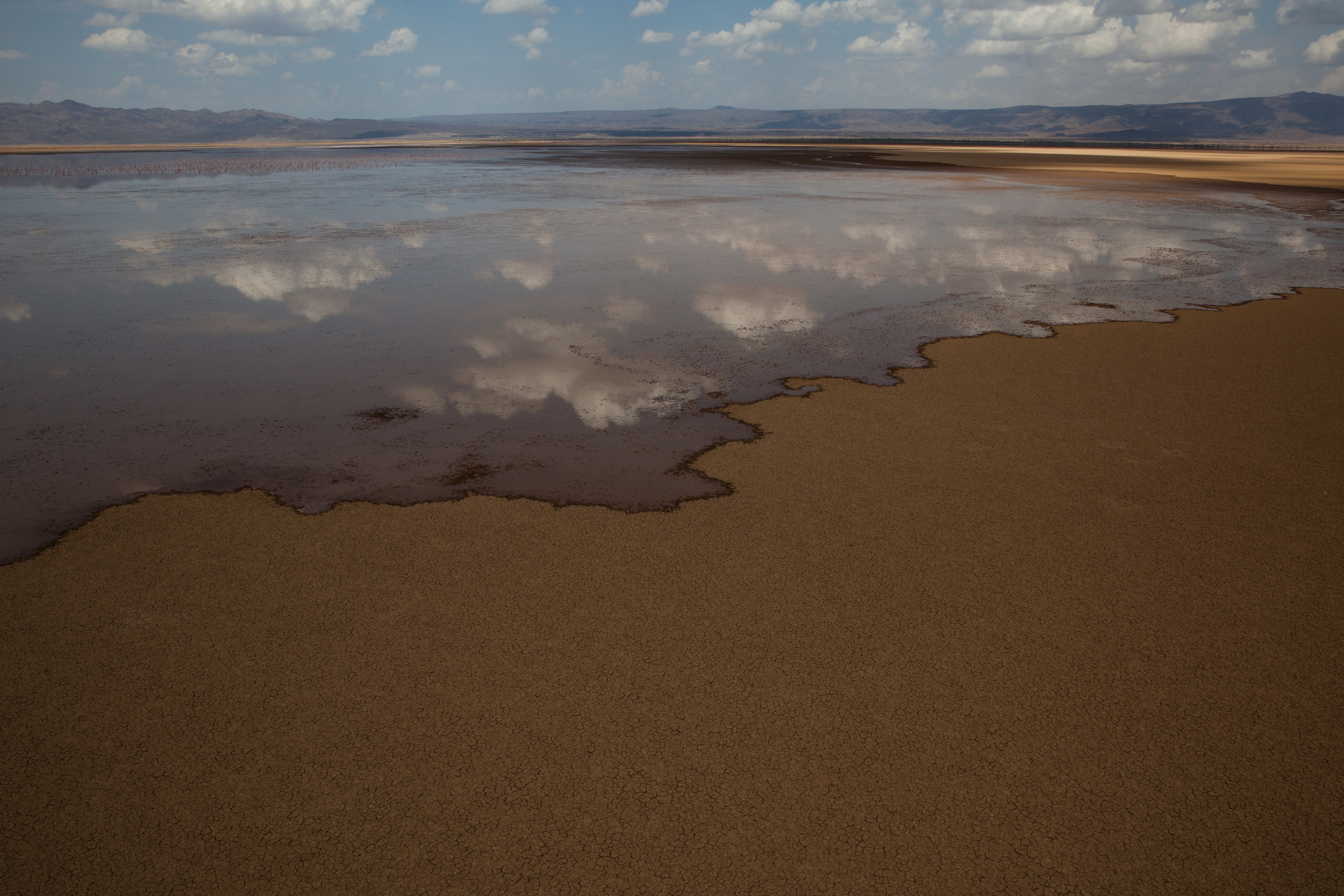 And the day continued like that, landing on sand dunes, running down them and doing sand angels at the bottom (and walking back up the bloody thing), setting down on volcano crater edges (two landing attempts “Ina, can you just check whether the back of the skids are over the edge?”), where no white people would have walked before us because there is no way of getting there and no reason to be there. No water, no food, no shelter. Following crocodiles up estuaries, and seeing millions of flamingos fly. It was like living in a National Geographic magazine. And Andrew caught a baby crocodile. I told you he was nuts. He put it back. He’s a nice guy. He is also an outstanding pilot.